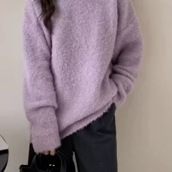 Relaxed yet sophisticated styling makes this jumper utterly chic. A women’s loungewear-inspired crew-neck pullover knit, thickened for warmth.